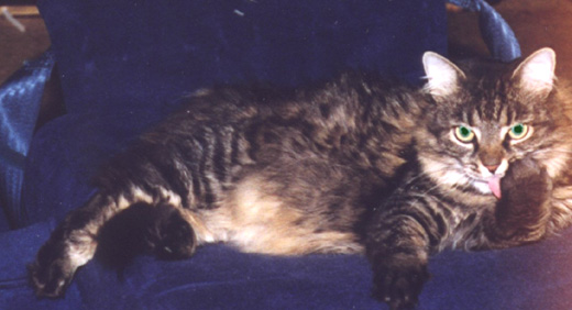 We are the caretakers of three very spoiled animals. Lady is our little German Shepherd. She was named after the dog in Lady and the Tramp. She loves to play catch (Don calls it Slobber-ball). She also enjoys watching TV with Don and Barbara. Lady has a very special dog house. She has her own big-screen TV, VCR, ceiling fan, fridge, washer, dryer, sofa, giant pillow, all the comforts of home.